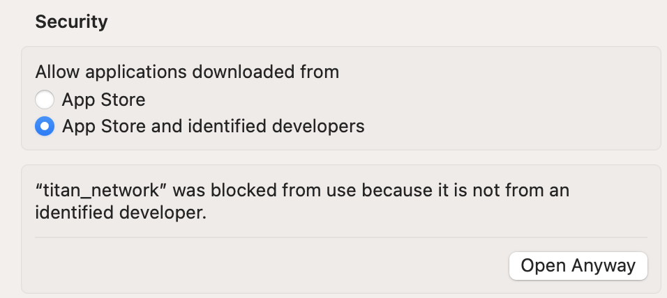 <figure><img src="https://3087894035-files.gitbook.io/~/files/v0/b/gitbook-x-prod.appspot.com/o/spaces%2F6MWUoQBijnrc0tNWtAzG%2Fuploads%2FSWJ0d6VdfTASZWtsmwE6%2FWechatIMG2689.jpg?alt=media&#x26;token=975b414a-4ac4-4897-bf48-02870ef2ed4d" alt=""><figcaption><p>Select Open Anyway</p></figcaption></figure>