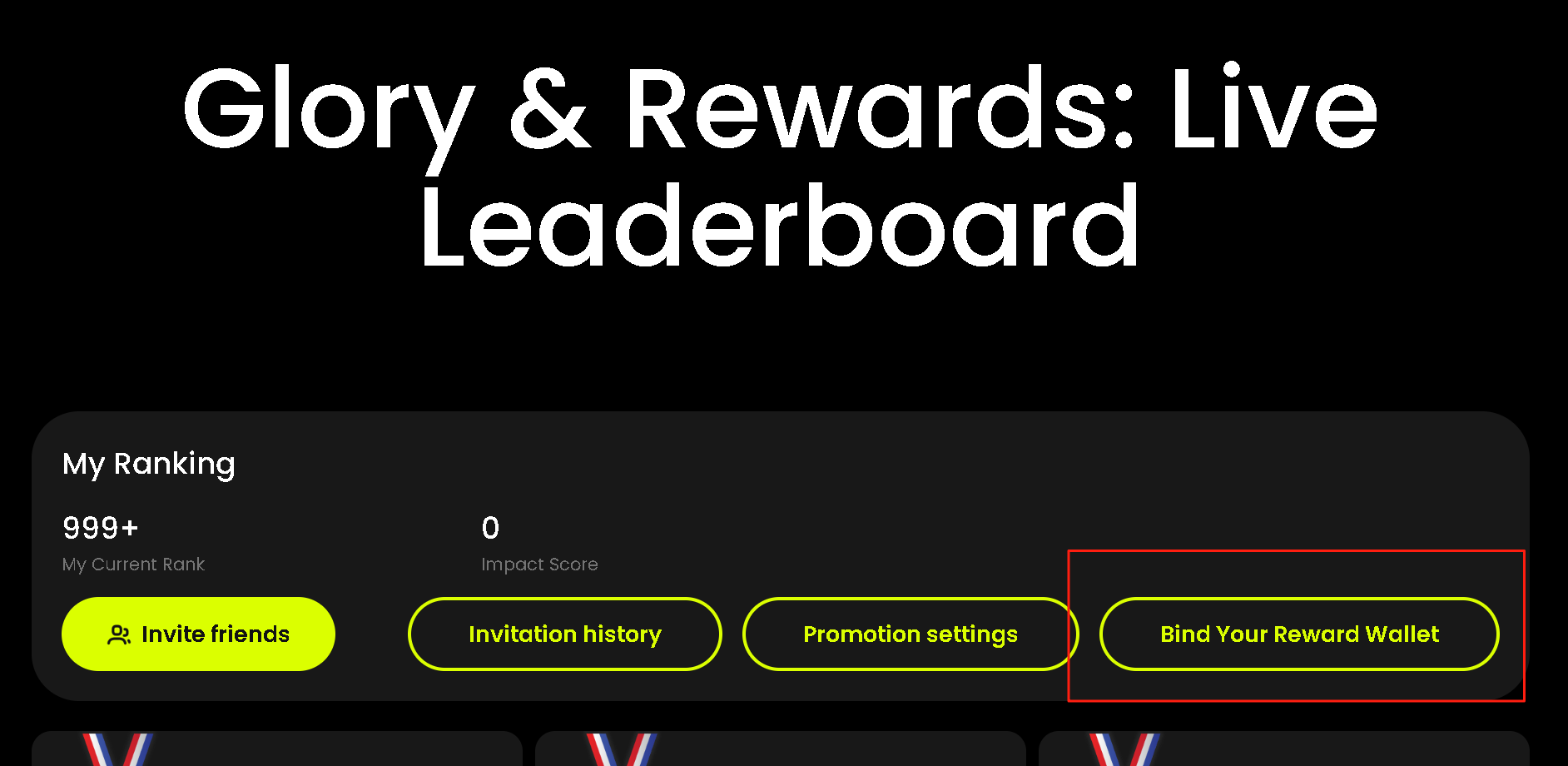 1. In the leaderboard section of the event page (<https://edge.titannet.info/invitation>) , click the \[Bind Your Reward Wallet] button.