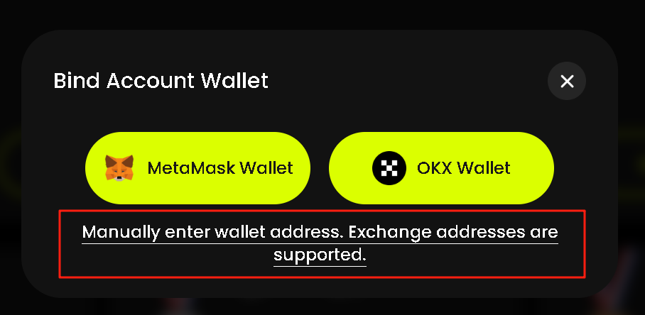 1. In the wallet binding section of the event page, select \[Manually enter wallet address.].